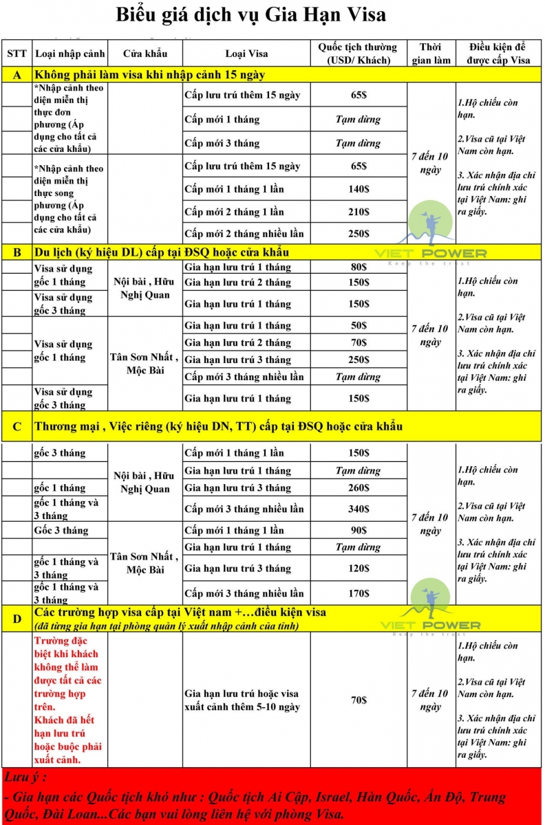 Với trên 10 năm kinh nghiệm trong lĩnh vực hỗ trợ và xử lý visa cho khách hàng trên toàn quốc muốn đi các nước trên thế giới với đội ngũ chuyên viên được đào tạo bài bản đã từng xử lý nhiều hồ sơ, làm việc chuyên nghiệp giàu kinh nghiệm thì Vietpower tự tin sẽ đem đến cho khách hàng dịch vụ tốt nhất, uy tín nhất về những vấn đề về visa với mức phí gia hạn visa việt nam rẻ nhất